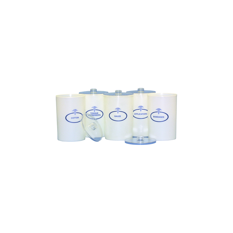 Provides exam room storage for products such as bandages, gauze, cotton, applicators, and tongue depressors